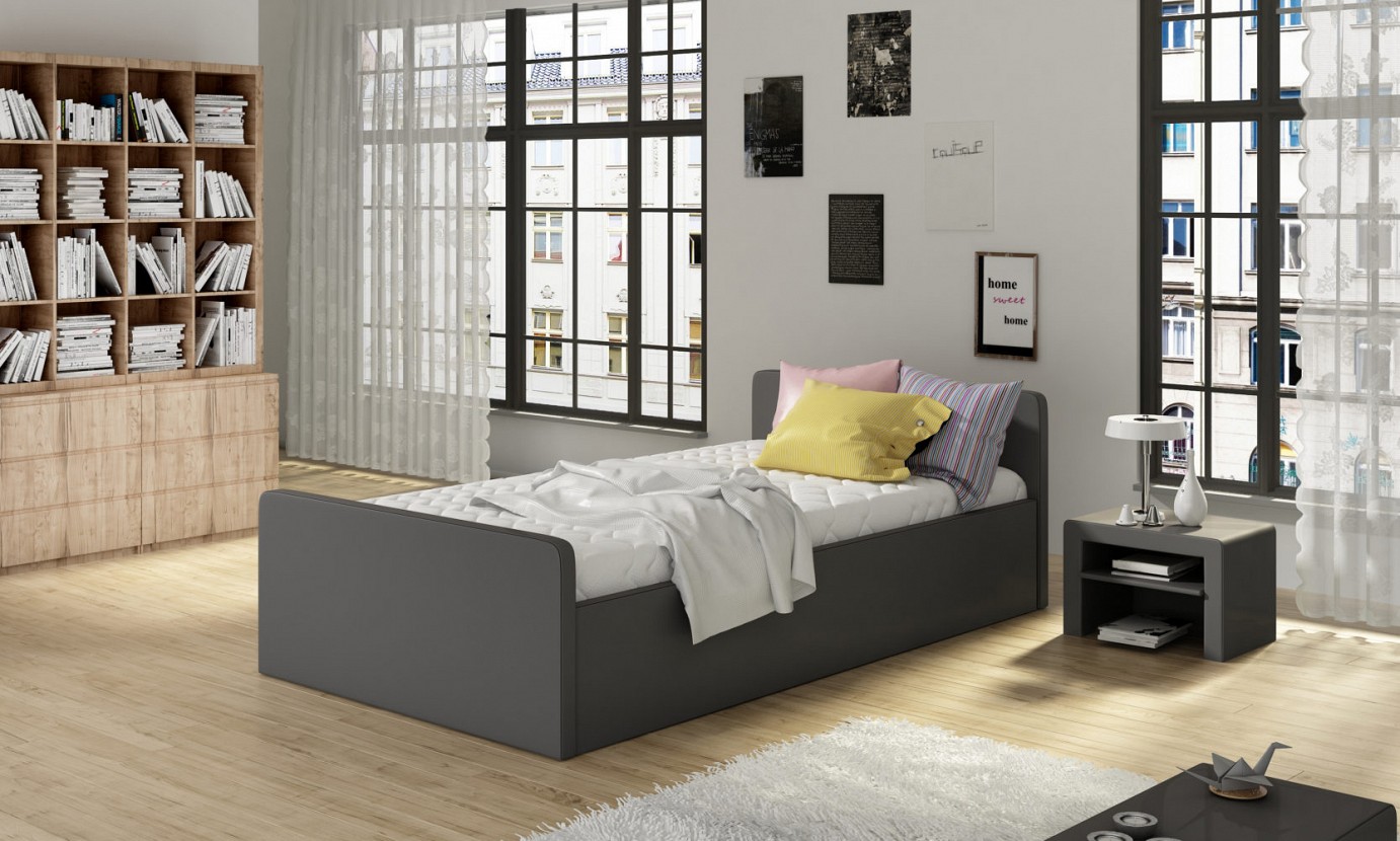 Łóżko tapicerowane z szeroką gamą materiałów do wyboru. Możliwość zastosowania pojemnika na pościel ze stelażem na ramie drewnianej lub metalowej. Konstrukcja: łóżko 81232-xx obicie 30352, płyta w obiciu z tkaniny meblowej, do wyboru z grup materiałowych. ...