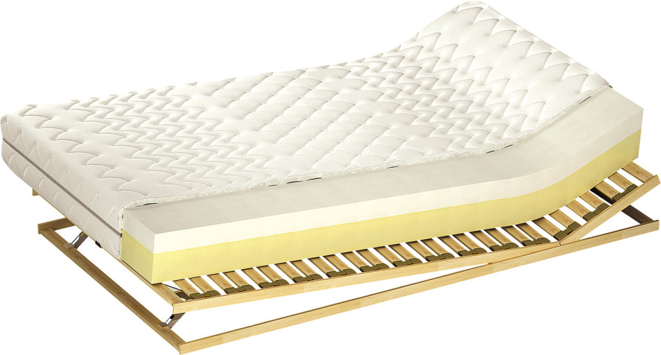 Wkład materaca stanowi pianka Kaltschaum o wysokości 12 cm i zwiększonej sprężystości oraz pianka termoelastyczna H2 – 8 cm (50kg/m3). Pianka termoelastyczna zmienia swoją twardość pod wpływem temperatury ciała idealnie dopasowując się do jego kształtu. Dostępne twardości H2 i H3.