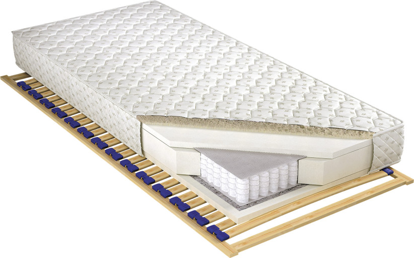 Wkład materaca składa się ze sprężyn woreczkowych, z wysokogatunkowego drutu, obłożonych z jednej strony przekładką tapicerską, a z drugiej siatką tapicerską i pianką poliuretanową T35-30 mm o zwiększonej sprężystości oraz jednostronnie lateksowanym włosie ...