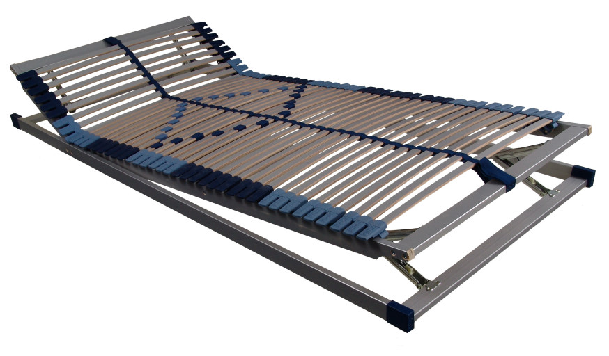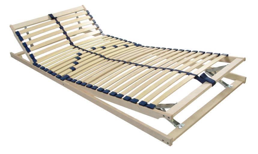 Budowa: stelaż całościowo wykonany z drewna bukowego, klejonego warstwowo, pokrytego folią dekoracyjną. 42 listwy osadzone w potrójnych elastycznych uchwytach na ramie stelaża, wzmocnione pasem dla lepszego rozłożenia ciężaru ciała. Regulacja w części ś ...